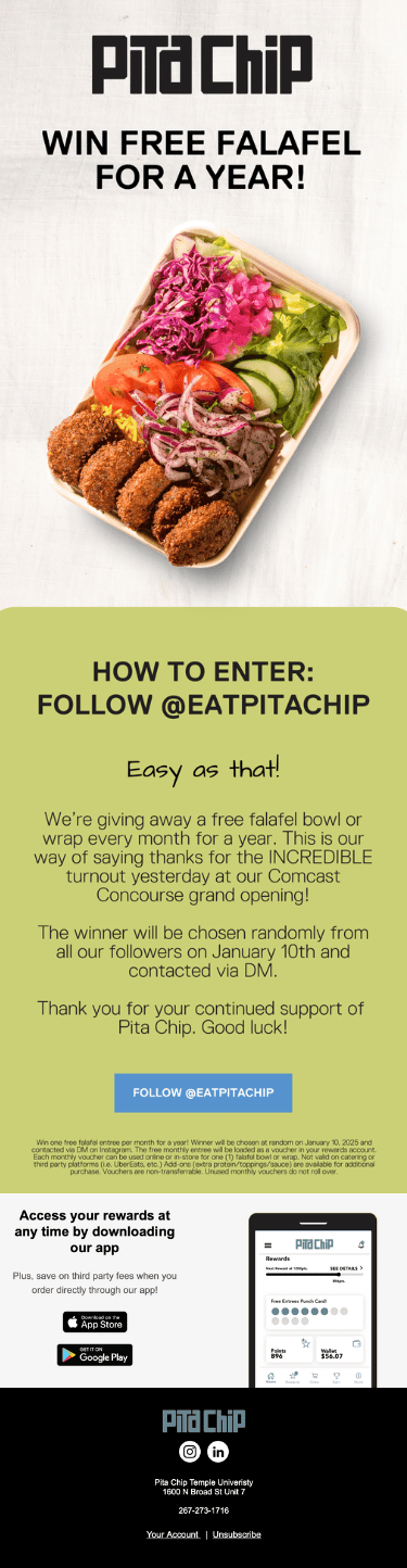 Pita Chip is a fast casual, modern Middle Eastern restaurant with four locations in the Philadelphia area.